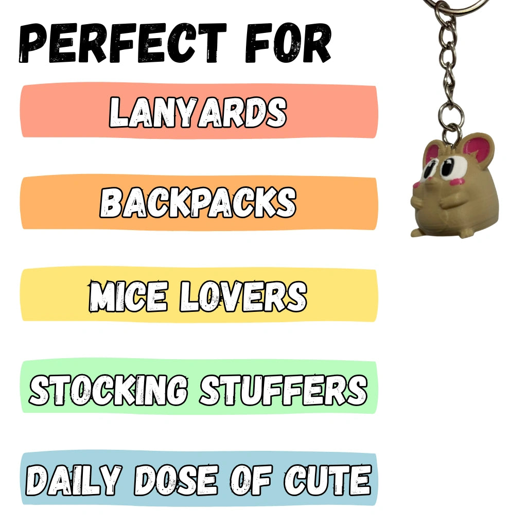 Our Chunky Mouse Figure/Keychain is the perfect little companion for your keys, backpack, purse, or to give as a sweet gift. This lightweight chunky mouse is designed to brighten your day with its cheerful and vibrant colors!
