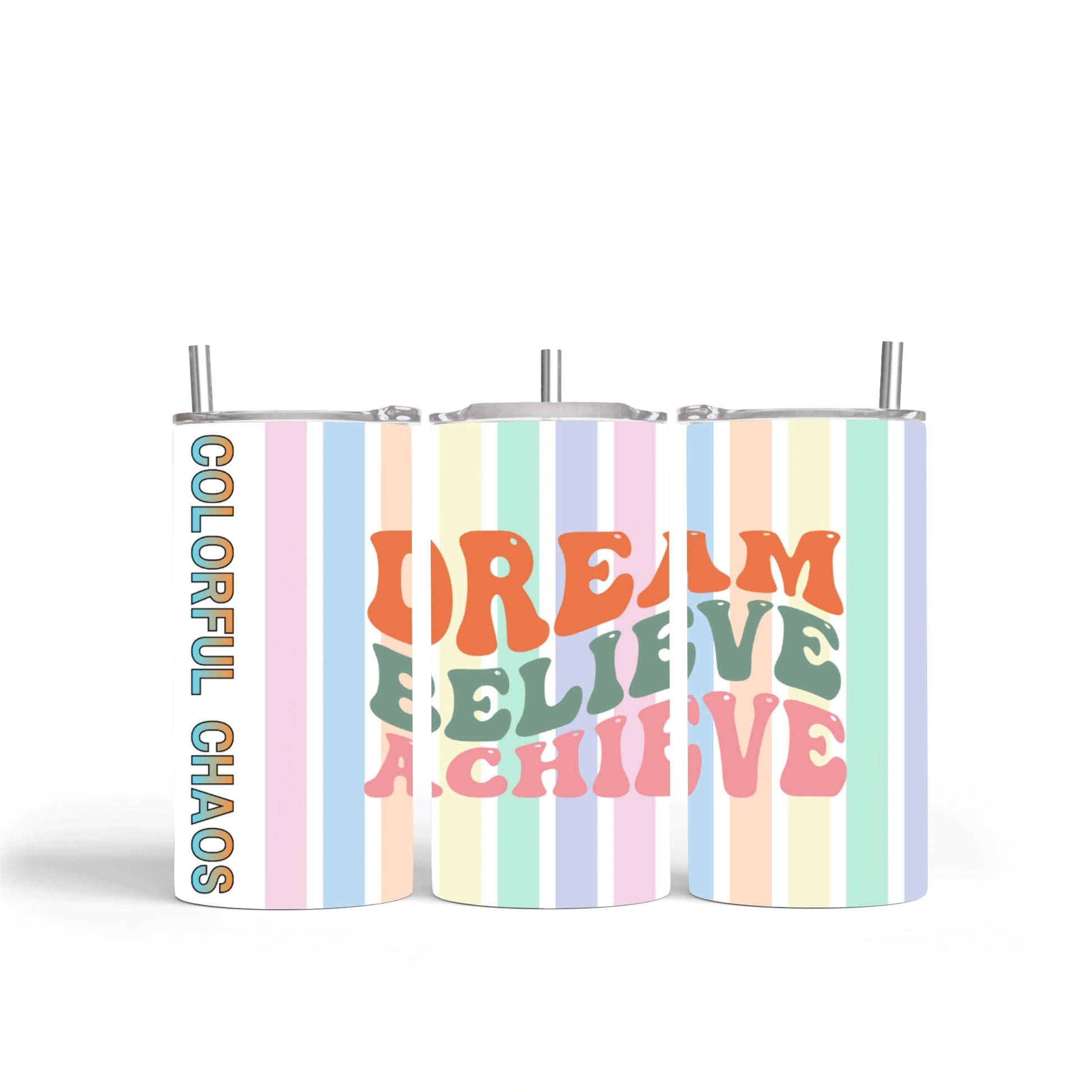 Fuel your day with the Colorful Chaos Motivation Collection. Each tumbler features bold, uplifting designs and quotes that inspire resilience, laughter, and self-love—created to spark joy and strength through life’s everyday chaos. Vacuum insulated to keep your drinks (and your mindset) just right, all day long.