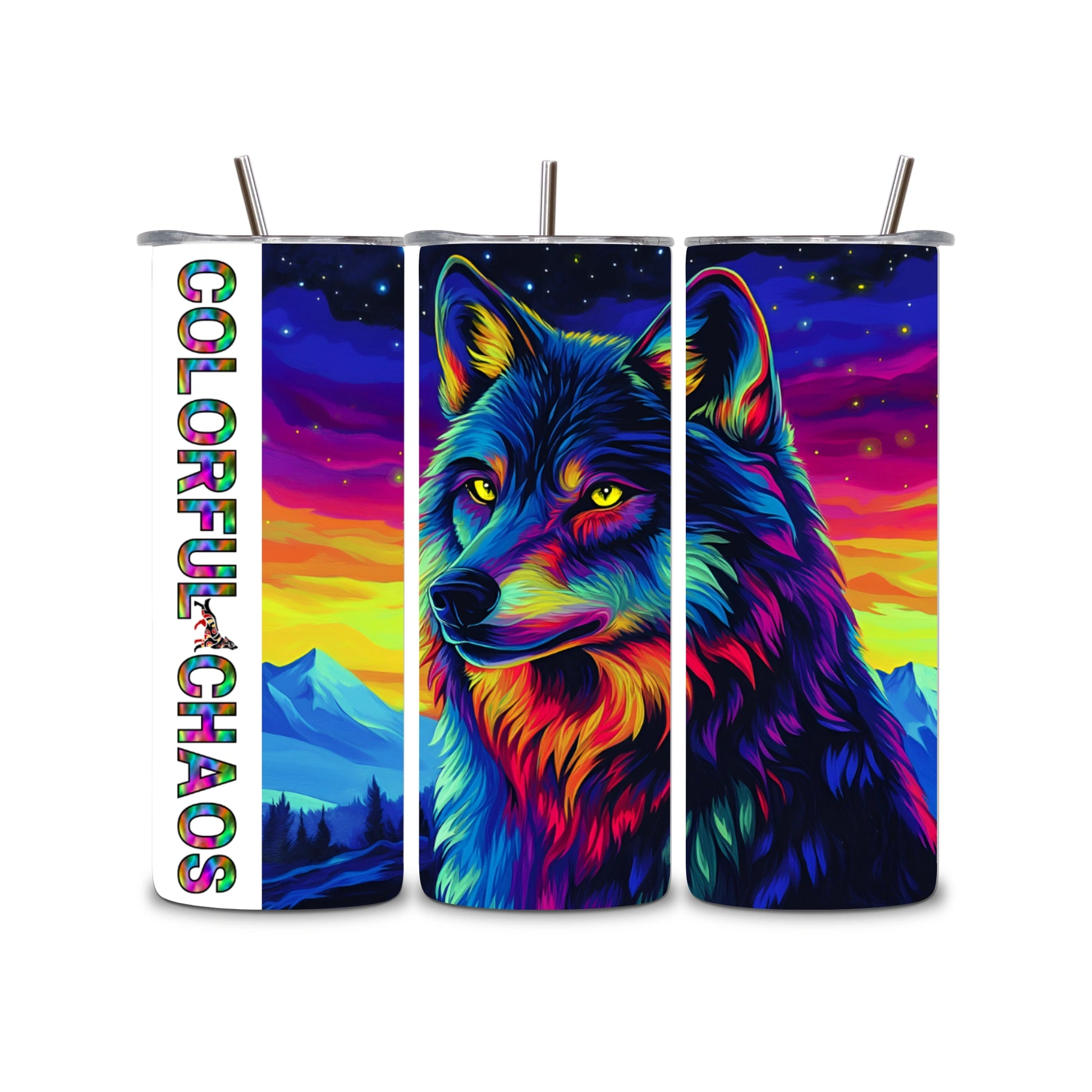 Find your power in the Colorful Chaos Spirit Animals Collection. Each tumbler features rich, high-energy artwork of animals like wolves, owls, and bearsâdesigned to connect with your inner strength and purpose. Vacuum insulated to keep your drinks ready for every journey, spiritual or physical.